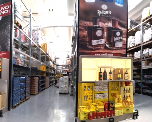 Attorno a questa idea del signor Luigi Di Vincenzo, proprietario dell’Horeca Di.Vi.L, è nato il progetto del nuovo punto vendita di Casoria (NA): offrire ai propri fornitori non solo uno spazio in corsia per posizionare le bottiglie, ma un vero e proprio “arco di proscenio” che incornici la scena. Un ambiente adatto ad esporre il prodotto nel modo più efficace, valorizzando la cantina di provenienza.