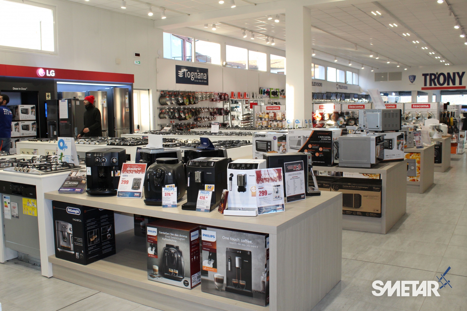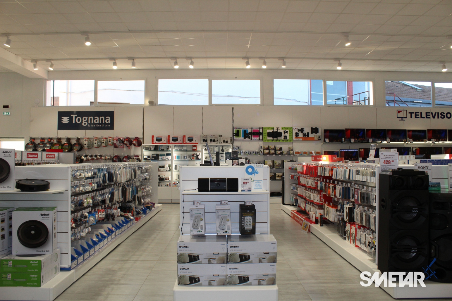 Smetar, che da tempo segue le aperture del gruppo Trony, avvalendosi della stretta collaborazione con professionisti del settore, ha saputo rispondere al meglio alle esigenze espositive del cliente, dettate dall’ampiezza del nuovo punto vendita e dalle numerose referenze presenti.