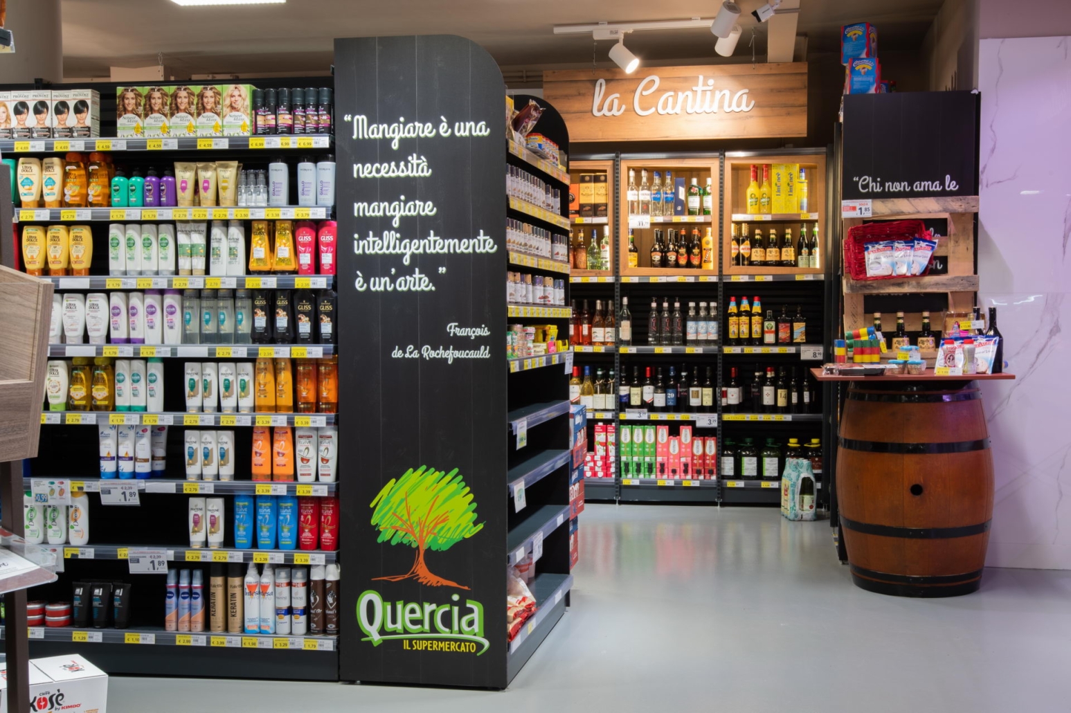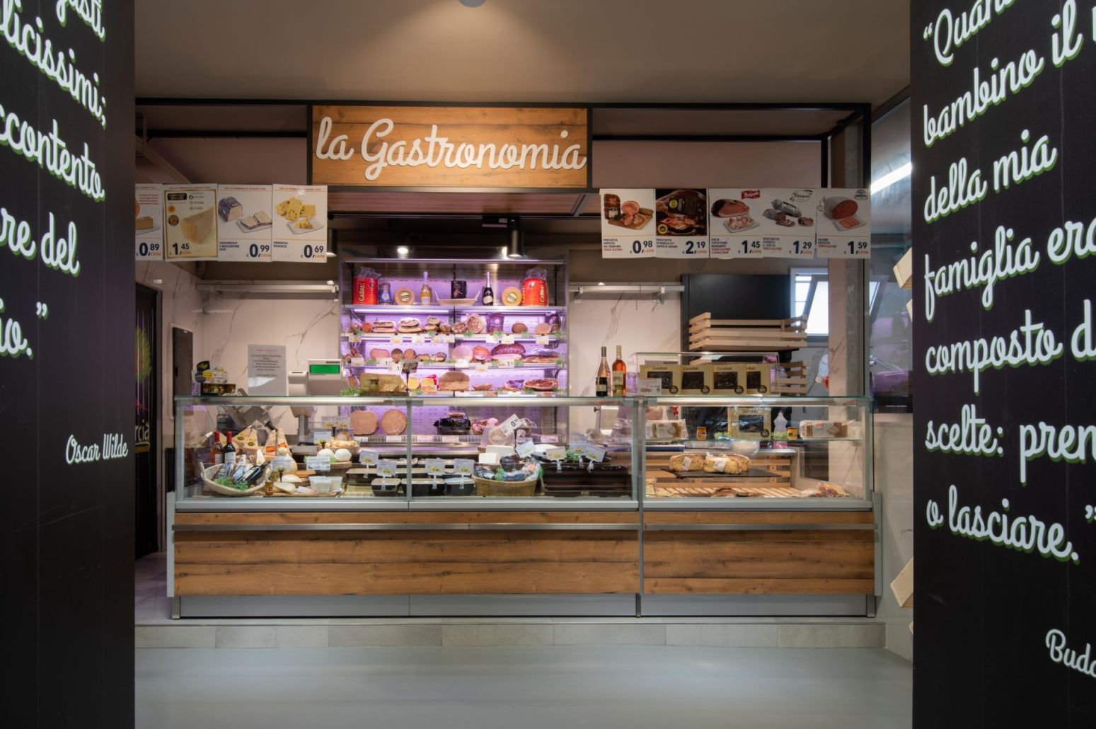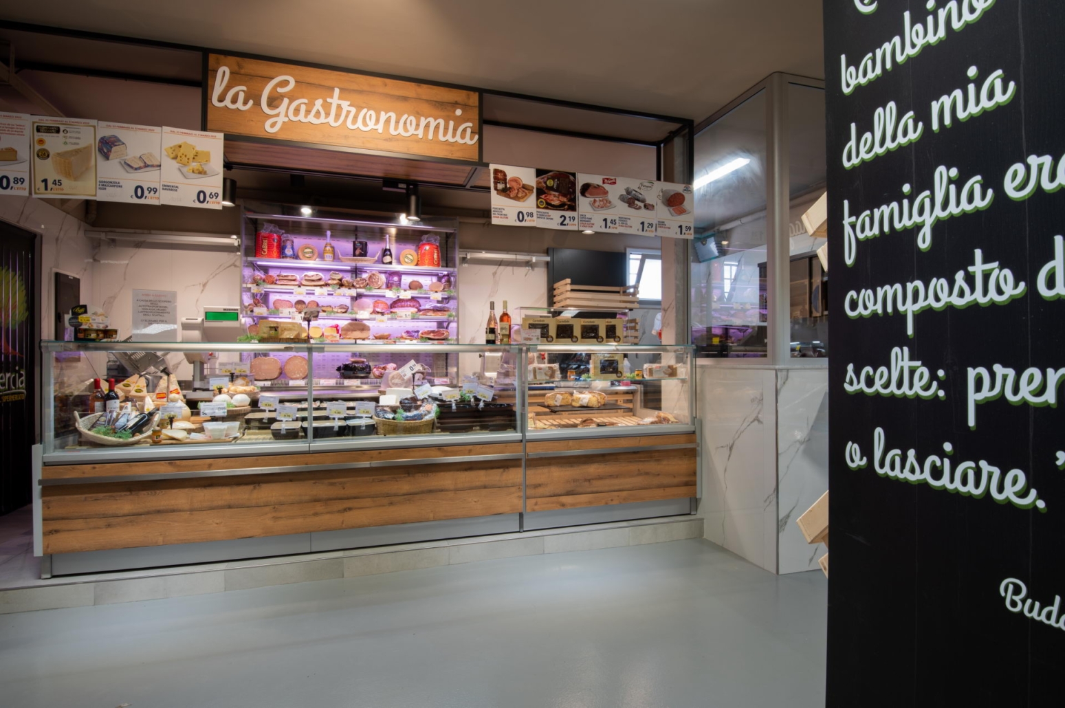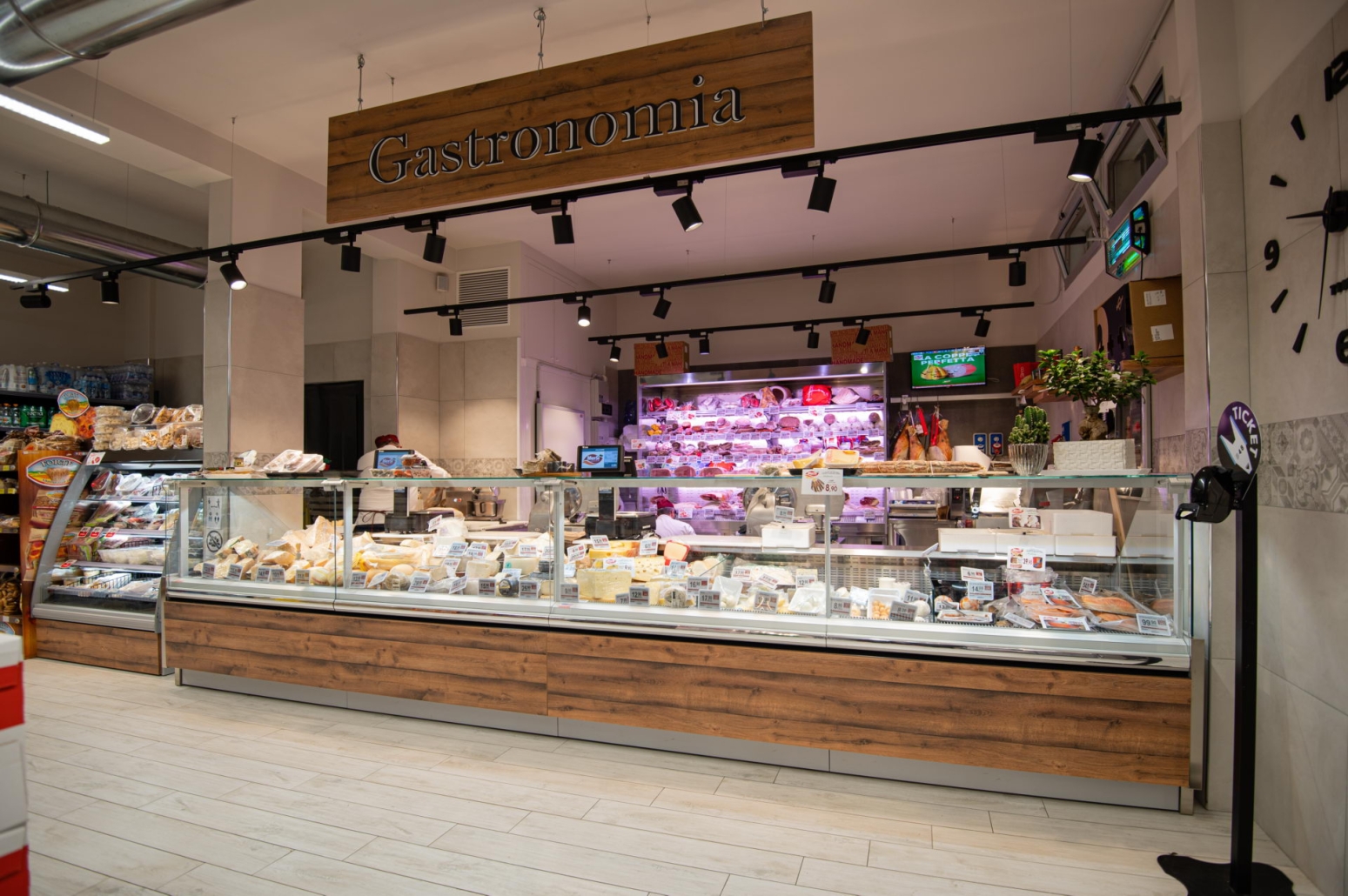 Arredo per gastronomia, area freschi, macelleria, panetteria, ortofrutta, zona cantina: un layout ideato e realizzato per immergere il cliente in una esperienza sensoriale che emozioni la vista ancor prima del gusto.