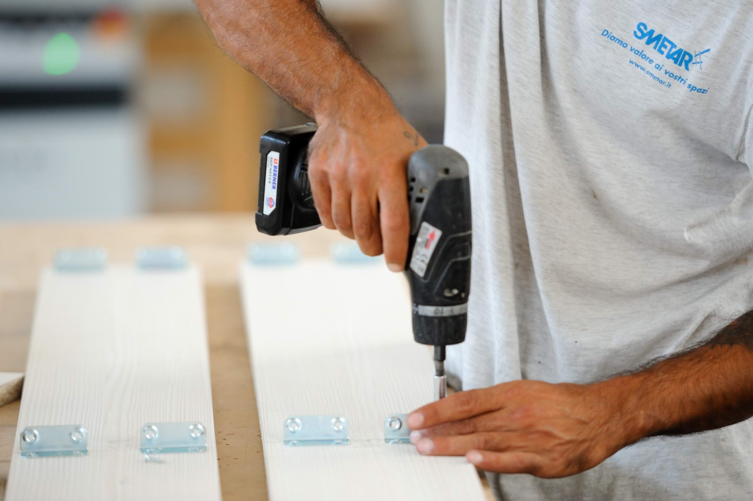 Grazie all’investimento in macchinari produttivi di ultima generazione, elettronici e a controllo numerico, riconosciuti dall’industria 4.0. il reparto produttivo Smetar può contare su un centro di lavoro CNC a cinque assi con bordatura automatica, sezionatrice a controllo numerico, piallatrici, pressa a caldo, calibratrice, e un’elevata disponibilità di utensileria meccanica ed elettrica per eseguire tutte le attività necessarie all’ arredo dei nostri clienti, anche in fase di montaggio.